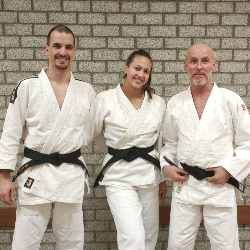 In het verleden zijn haar judo basisvaardigheden in Arnhem bijgebracht en nu ze woonachtig is in onze omgeving wilde ze eindelijk haar eerste dan eens binnen gaan halen. Met Richard als valpartner en twee trainingen per week is dit haar gelukt.