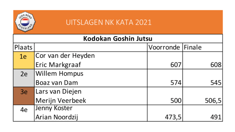 Zondag 14 november werden de Nederlandse Kampioenschappen Judo Kata gehouden in Valkenswaard. Eric Markgraaff en Cor van der Heijden wilden hun titel in het Kodokan Goshin Jutsu verdedigen die zij behaald hadden in februari 2020. Sinds de corona pandemie zijn inval heeft gedaan zijn er geen wedstrijden geweest waaraan zij konden en/of wilden deelnemen. Zowel het EK in Polen als het WK in Portugal hadden zij laten passeren. De voorbereiding voor dit NK was in juni gestart, maar of dit voldoende zou zijn voor een nieuwe titel was natuurlijk de vraag.